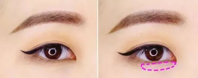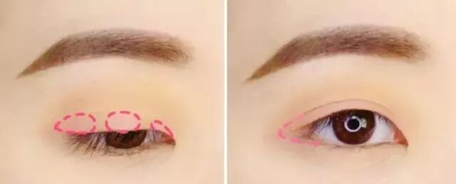 Step 4:上眼皮雙眼皮褶皺內以及下眼尾一小段內用粉紅色眼影暈染。