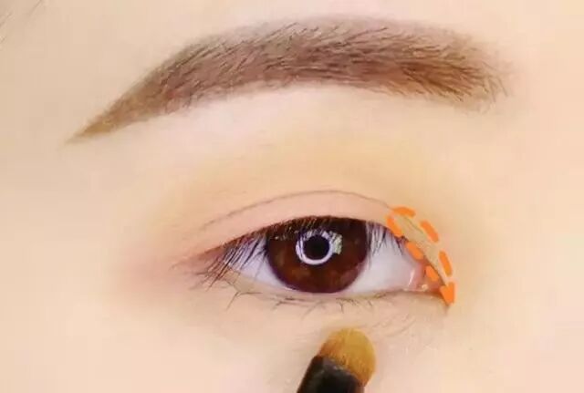 Step 3:用米棕色眼影在眼周大面積暈染。