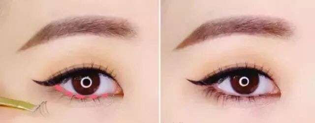 Step 10:下睫毛如果比較短小的話可以分段貼上假睫毛,中間的假睫毛不要選太長太密的,太長會顯得妝容比較誇張,眼尾的假睫毛可以稍微選擇長一些的。