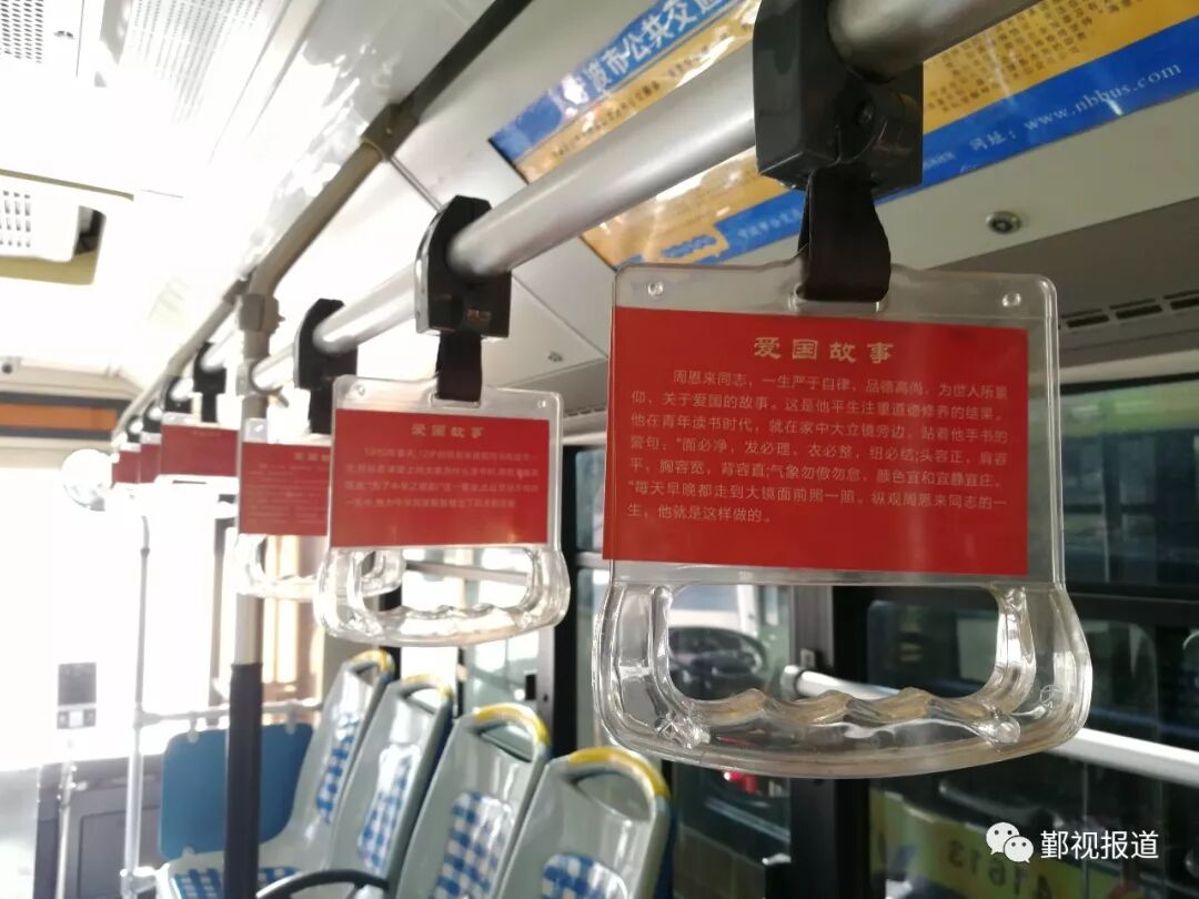 除此之外,11路的主題車廂以愛國主義教育元素為主,展示位置為車廂右側拉手插片,展示內容以近、現代愛國主義小故事為主。車廂內還張貼懸掛了愛國主義宣傳圖片,在車廂內營造一種愛國主義教育的氣氛。
