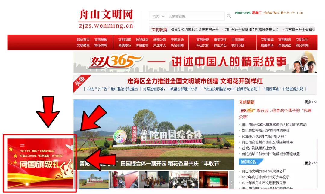 ▼方式一:網頁進入舟山文明網首頁。點擊左側飄窗活動專欄即可進入留言界面,為祖國寄語。