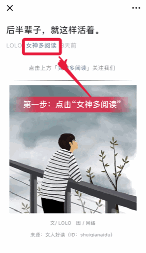 第一步:點擊文章頂部左上方藍字「女神多閱讀」