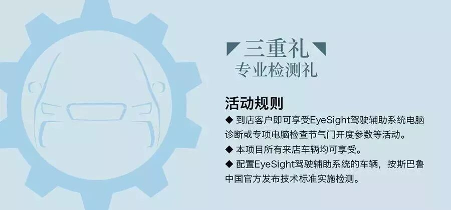 斯巴魯認證技師為您服務,系統檢測全免費。注意,是全免費呦。而且,像EyeSight駕駛輔助系統這種十分精密的系統,非專業人士操作不當會存在風險的說。不花錢就能享受原廠品質服務,超划算!