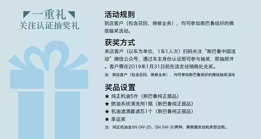 掃碼認證就可參與店內抽獎:純正機油(5L)、燃油系統清洗劑、原廠機油濾清器。隨便中了哪個都挺不錯的,對不?