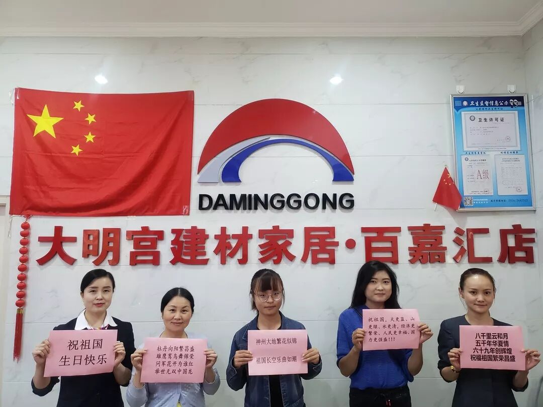 今天,大明宮建材家居外阜項目的五店:鹹陽尚美家店、亞典店、漢中百嘉匯店、興平旭景店、固原晨光店,也有很多話想要對祖國母親說。