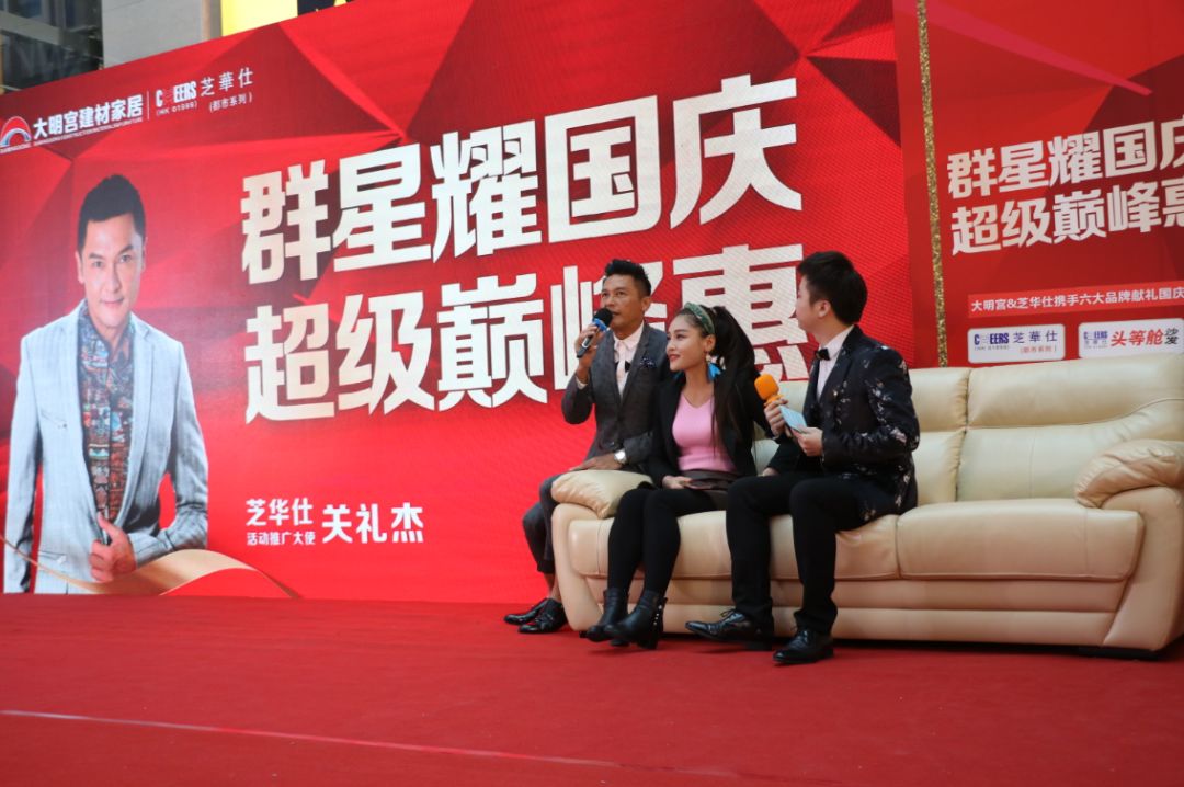 國慶假期第三天,香港TVB著名演員關禮傑先生來到了大明宮建材家居·東三環店,助陣芝華仕沙發「群星耀國慶 超級巔峰惠」活動,讓我們一起來看看活動現場的盛況吧!