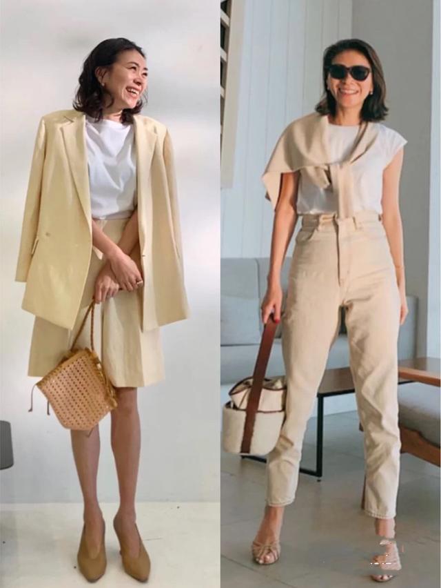 而要說到職場穿搭,西服是不可或缺的一部分。誰說40+就得穿中年人的衣服,看這個博主,用淡黃色穿出無齡感的職場高級風。厭倦了職場的黑與白,溫柔的奶油黃也是個不錯的選擇,知性溫柔又不落入俗套,搭配起帥氣的百慕大短褲又酷又颯,超有架式兒。這個博主的無齡感穿搭很適合40+女生,簡約大方又高級,這麼穿太美了!