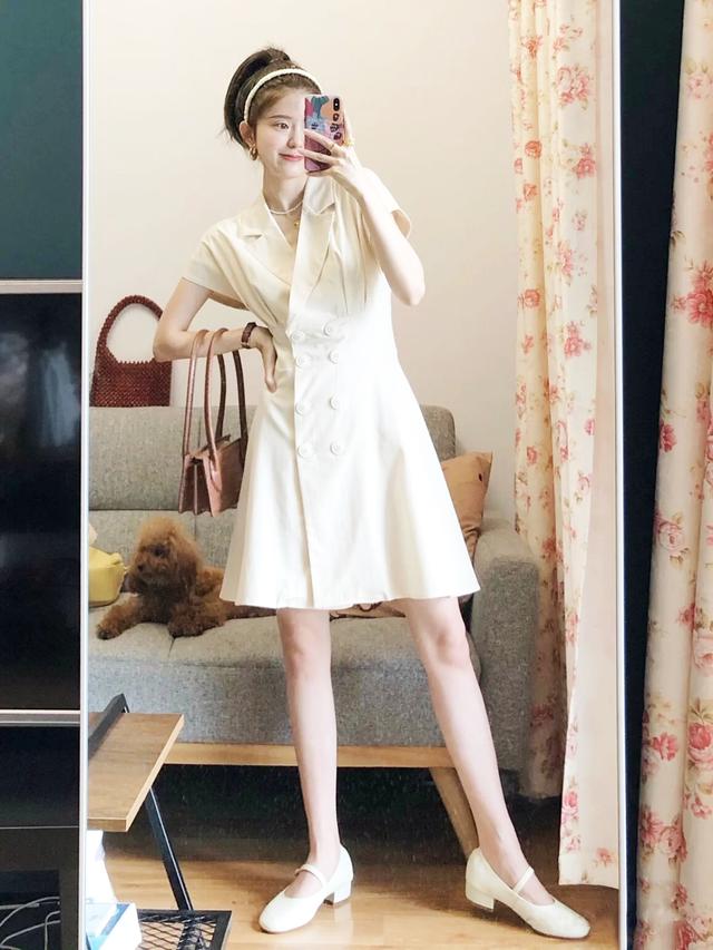 想要出門更快捷,連衣裙就能搞定。火爆的西裝連衣裙,收腰有型,搭配一雙瑪麗珍鞋,就像是參加晚會的小公主。背上深褐色的小包就可以快速出門啦,整體造型和氣質都不在話下。