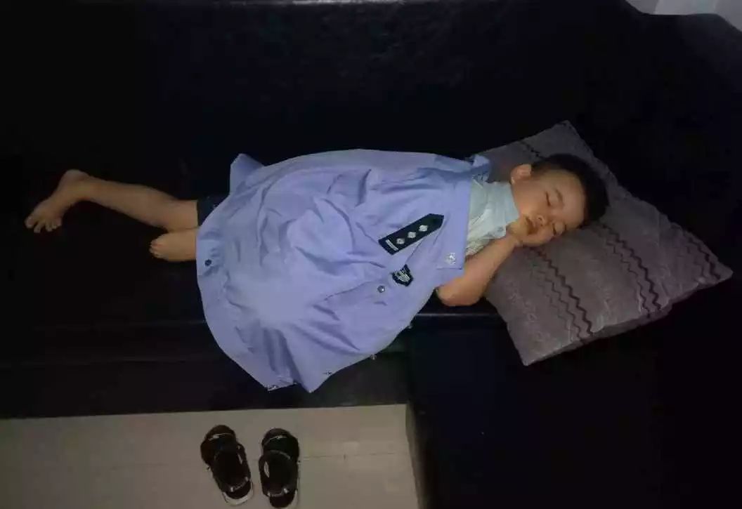 當他們回到所里已是凌晨兩點多,而此時的黃教導員還要加班錄平台,兒子則在旁邊的沙發上已進入了夢鄉……