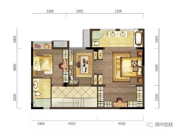 思緣·天香禦府空中別墅打造的全躍層式布局,形成以一層家庭休閒娛樂、老人房,二層主臥套、兒童房為中心的交流空間。