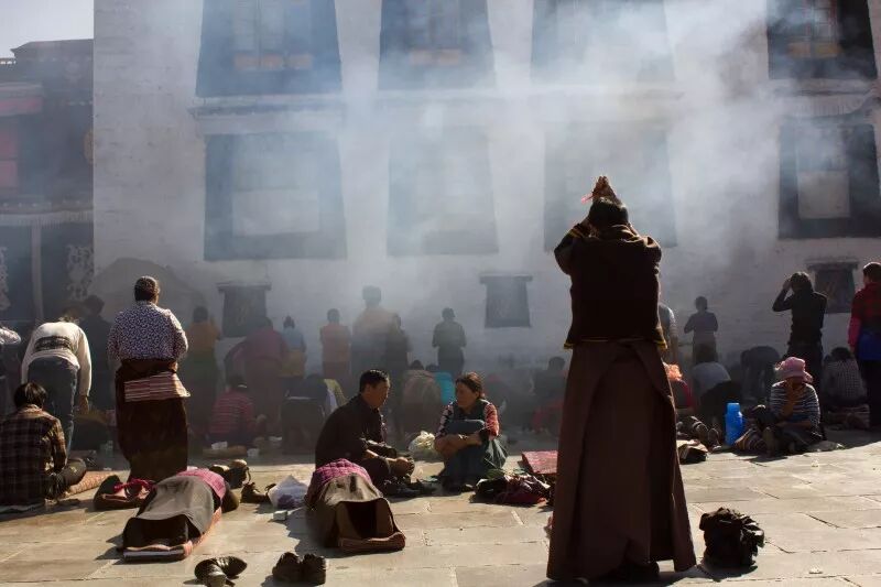 搖動經筒默念瑪尼我今生的痛苦乃前世的因果我不會絕望我不會怨恨我只會把它化為來生的幸福!
