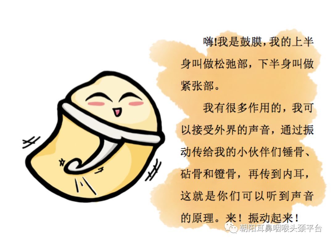 鼓膜又叫耳膜,是耳朵里灰白色半透明薄膜,呈橢圓形,外形像個漏鬥,它是中耳的一側門戶,由它把外耳與中耳隔開,主要起到保護中耳腔的作用。正常情況下,鼓膜能感應由外耳道傳入的聲波,產生振動並牽動附於其上的聽小骨鏈,使聲波的刺激傳進中耳。今天就讓我們一起聽聽來自鼓膜的告白吧。