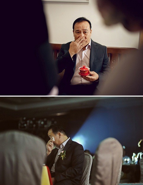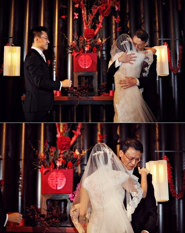 婚禮那天,敬茶禮成時,父親一直說「我今天把女兒交給你了,就交給你了……」,隨後,他口角微抿,眼瞼泛紅……