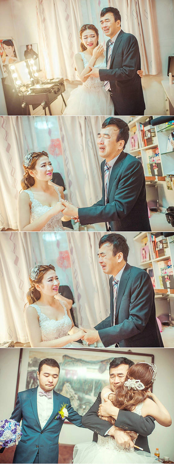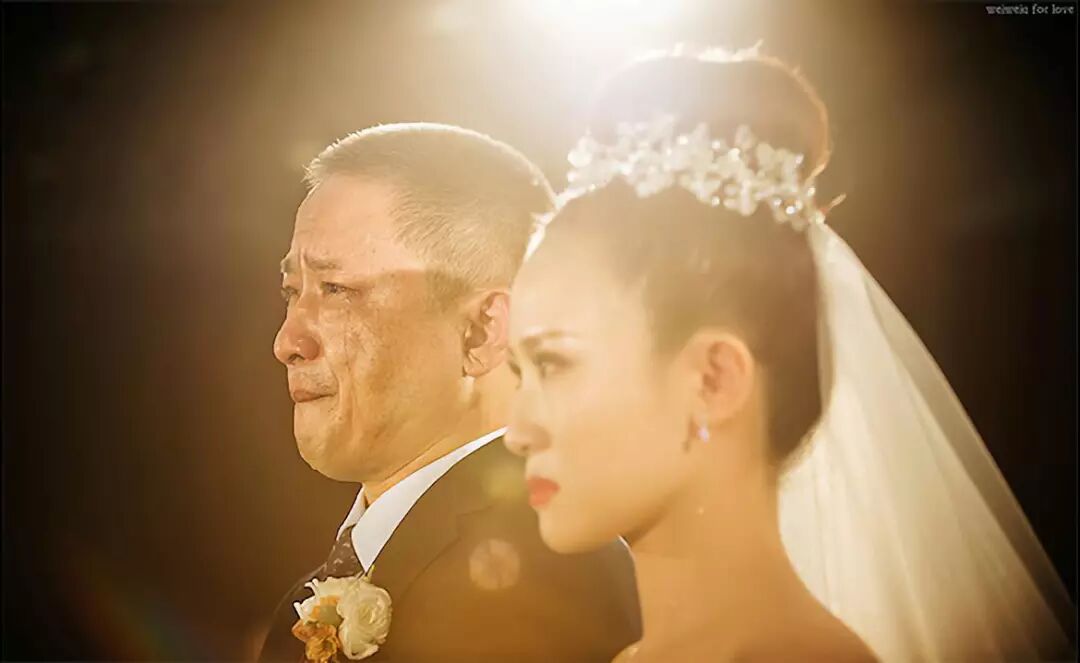 遠嫁,永遠是一個與沉重和不舍相關的話題。那天沒從女兒穿上婚紗,父親的目光就久久停留在女兒的身上。