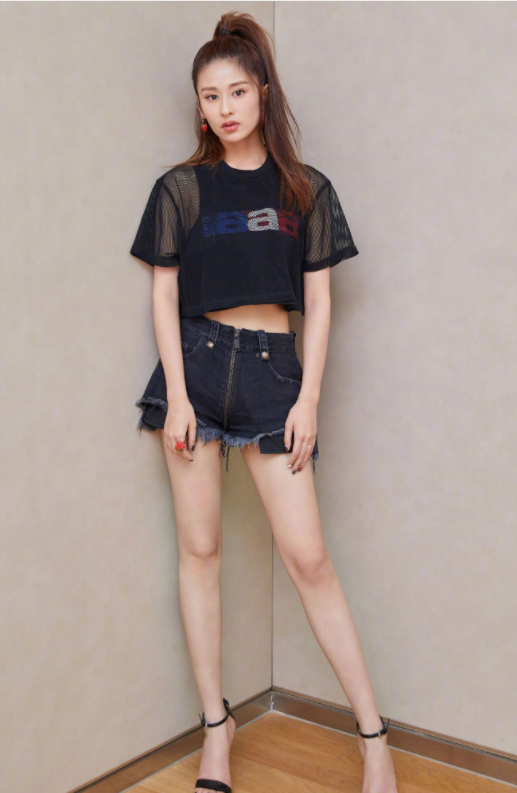 身材好的女生可以嘗試短t恤來搭配高腰褲,借鏡上短下長的技巧修飾你的身材比例,塑造出好身材,穎兒下面這一身穿搭也是如此啊,露腰的t恤都露出了馬甲線,身材比例太完美了吧。