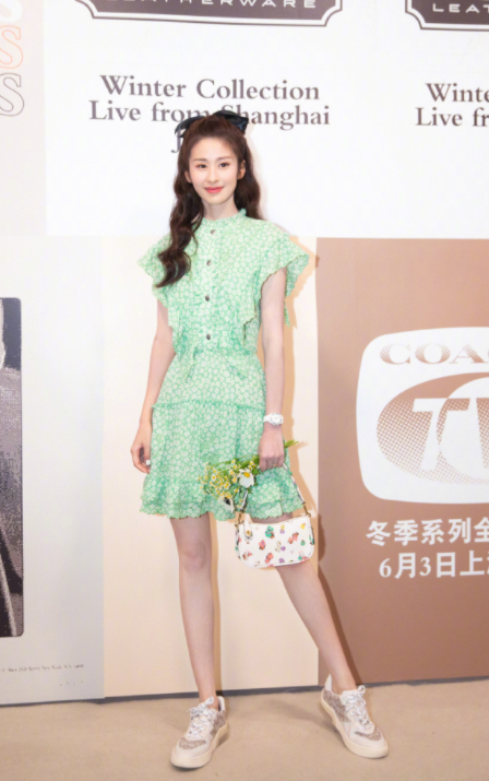 在夏天的話,越來越多的女生喜歡嘗試淺色系的搭配,穎兒這種淺綠色的碎花連衣裙就可以讓她整個人一下變成18歲少女,淺綠色的花紋融入起來顯得皮膚白皙,而且狀態很好,整個人也確實年輕了許多。