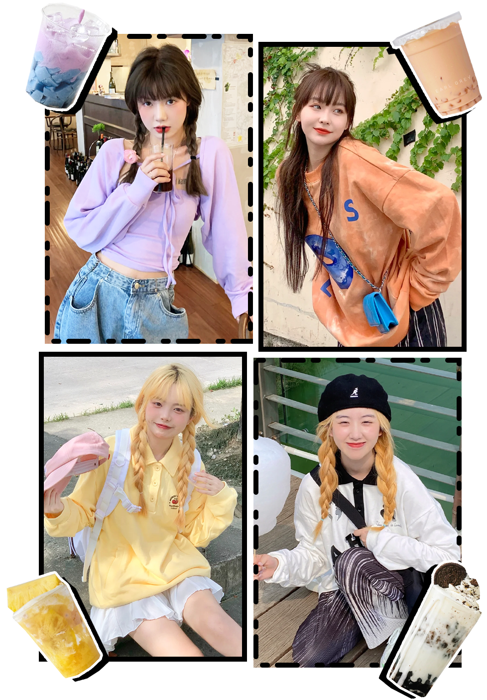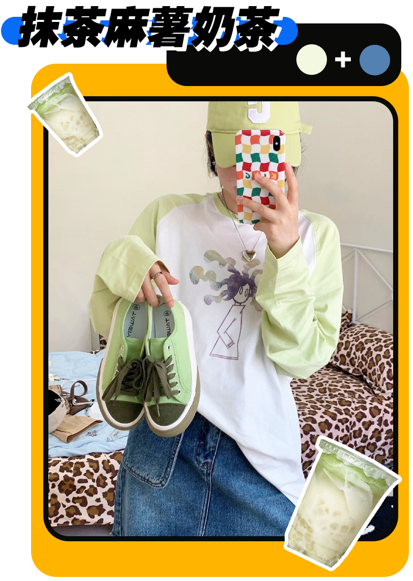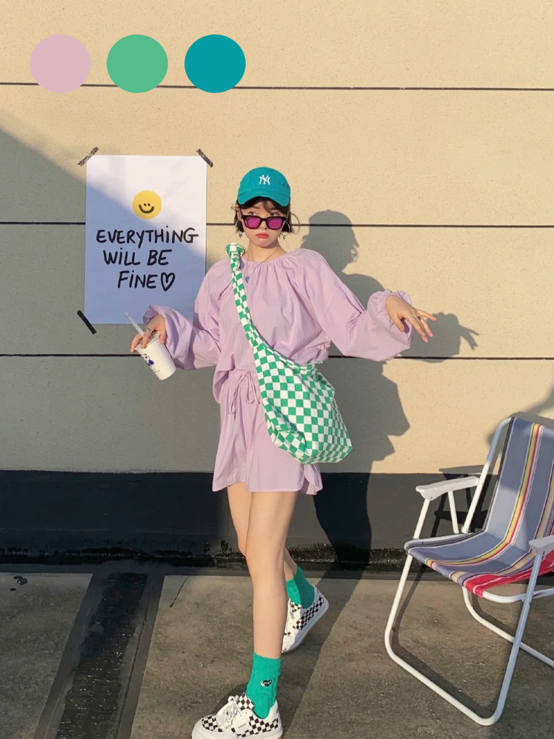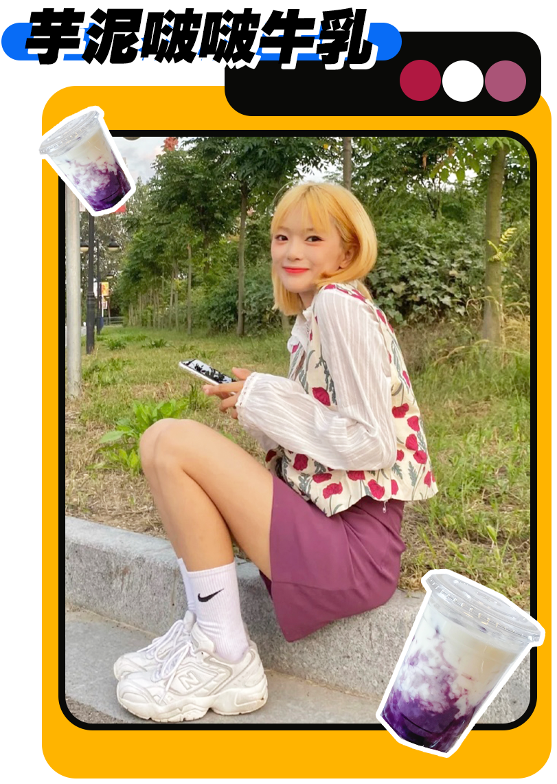 芋泥啵啵牛乳穿搭比起前面幾套,顏色會更跳、更大膽一些,雖然有一丟丟難駕馭,但就是架不住好看呀!