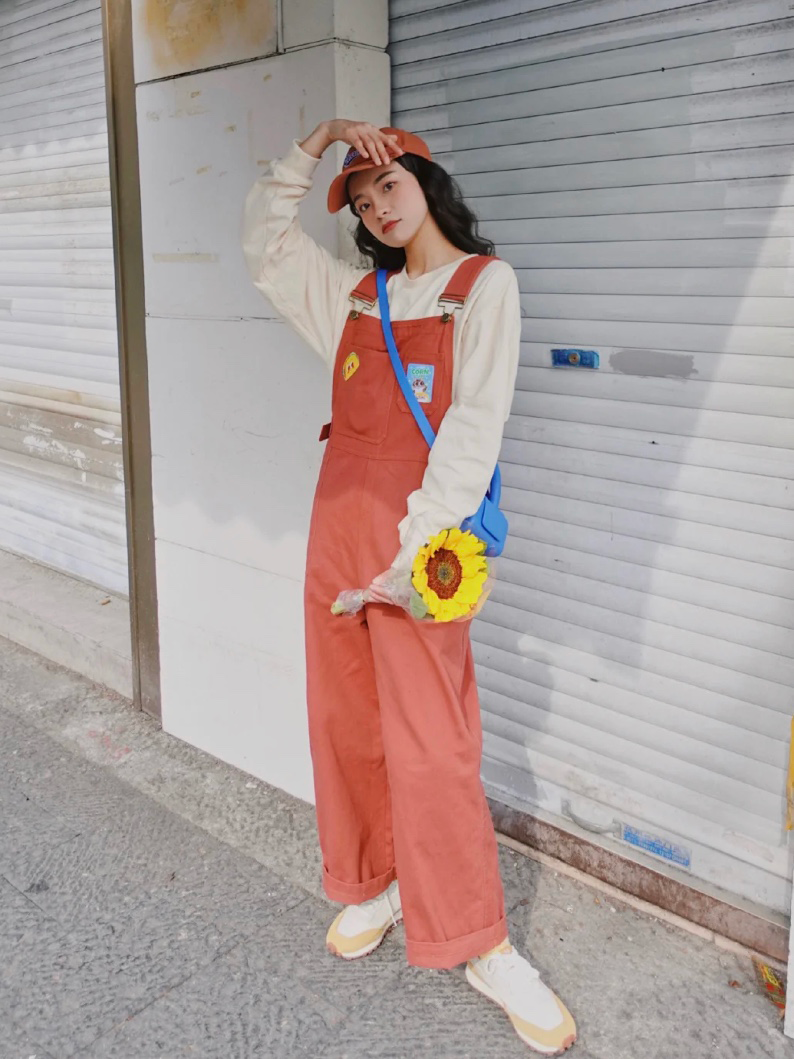 如果矮個子的女生想嘗試背帶褲,記得把褲腳挽起來哦,露出腳踝顯高顯瘦誰知道!▼▼