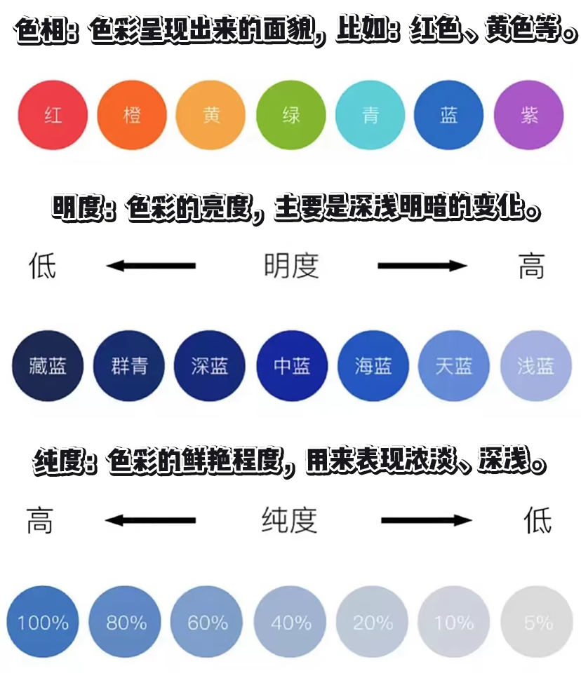 是不是看懵了?別急,我給泥萌總結了一張色彩圖,可以很直觀地幫助理解,建議收藏!