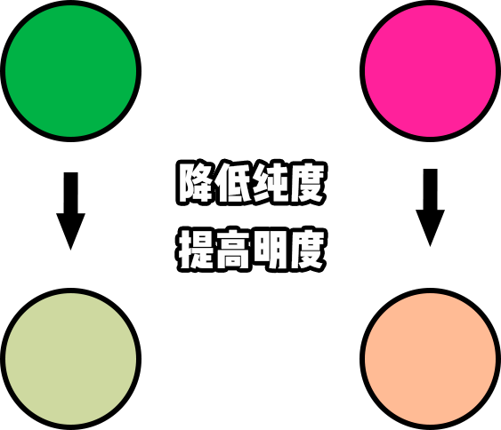 這時候,如果把顏色的飽和度降低,也就是,降低純度,提高明度,減少沖擊感~