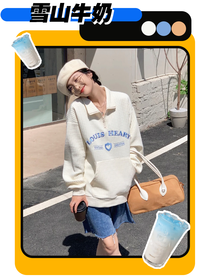 除了色調,衣服材質也同樣重要,像這件衛衣明顯材質就很柔軟,穿上身乖乖女屬性瞬間拉滿~