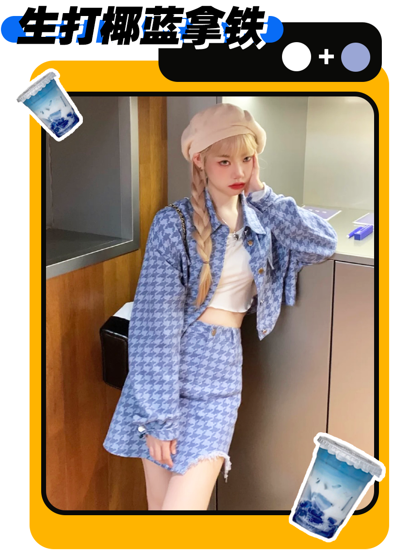 再套個奶乎乎的貝雷帽,出門炸街走起!我還給你們找了兩套生打椰藍拿鐵穿搭,趕快get起來~▼▼