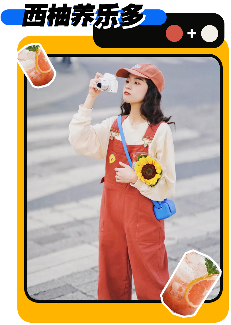 可鹽可甜的西柚養樂多跟復古風簡直絕配!以紅棕色+米黃色為主色調,輕輕鬆松打造日系休閒風~
