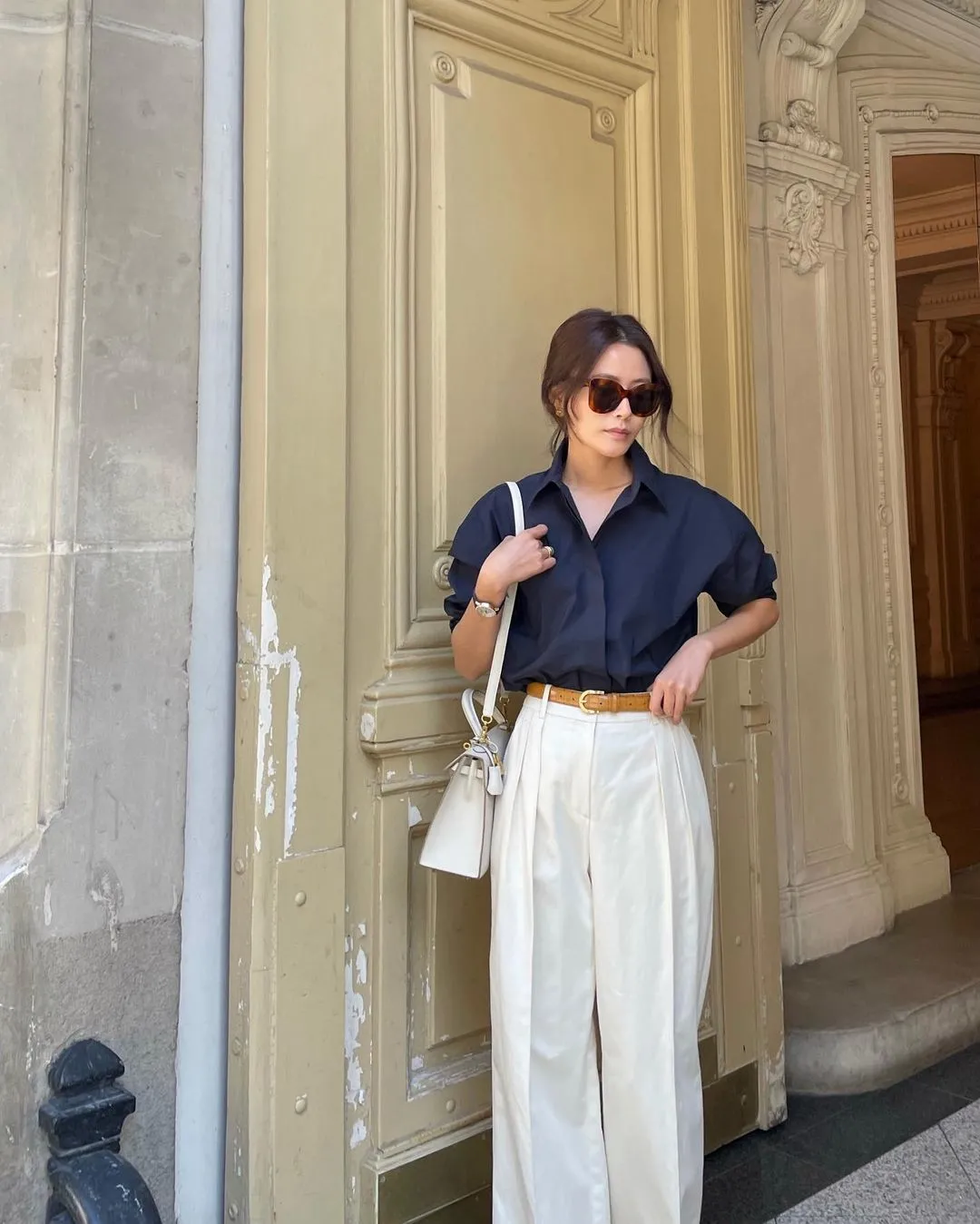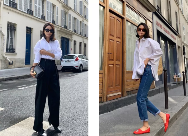 經典穿搭當然少不了經典不過時的基本款。最常見的便是襯衫,無論是職場還是日常,襯衫的利用率都非常高。選擇一件基礎白襯衫,搭配闊腿褲幹練利落,搭配牛仔褲休閒日常,怎麼都顯大方。▼