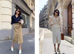 稍微硬挺一點的襯衫,搭配直筒裙就適合上班族。有一個小心機是,選擇開衩直筒裙,心動方便且能打破一本正經的感覺。▼