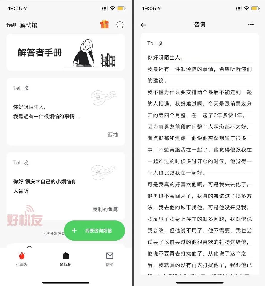 「Tell」的核心版塊也是兩部分:小溝火、解憂館。