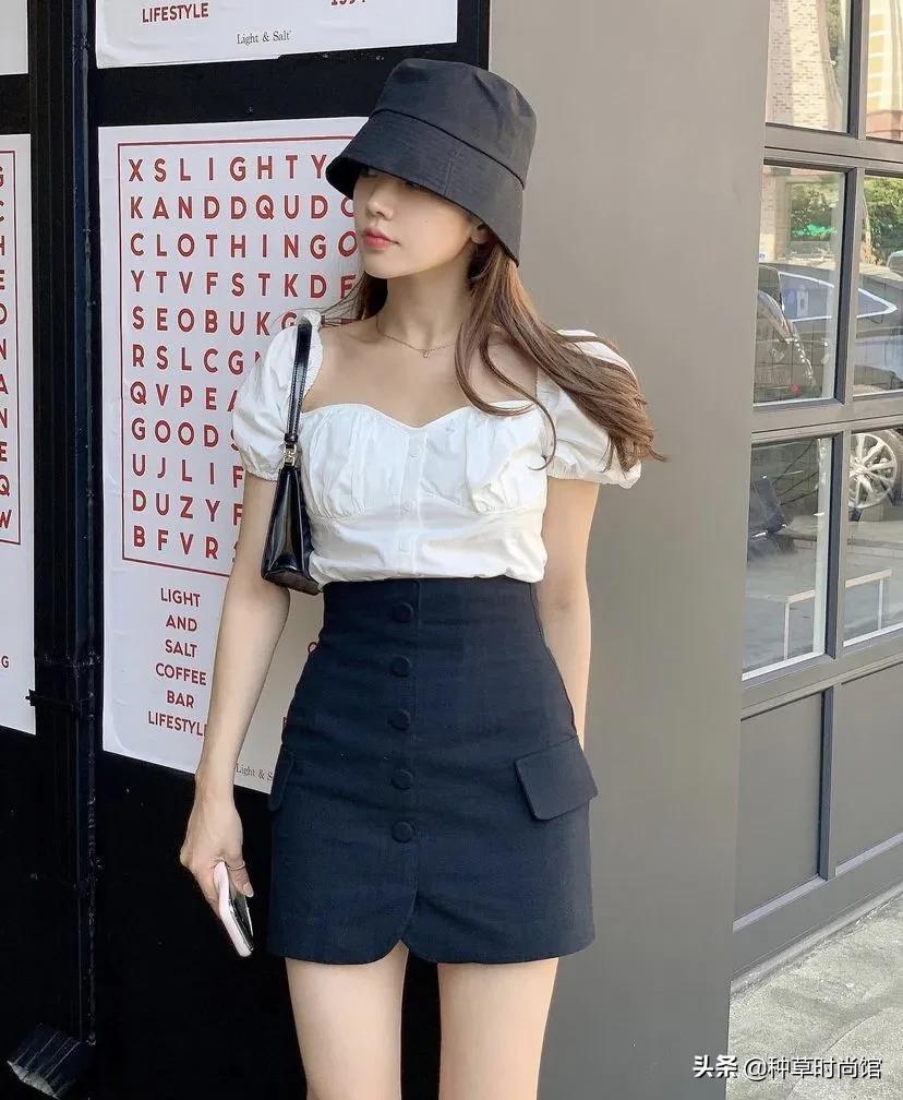 或者按照之前穿搭tips,白色泡泡袖+高腰A字短裙,穿上身又鹽又甜。