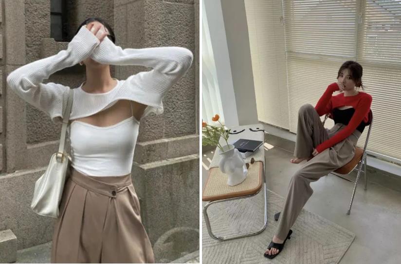 天氣逐漸轉涼,夏天不敢穿的吊帶可以配合假袖子一起整上。