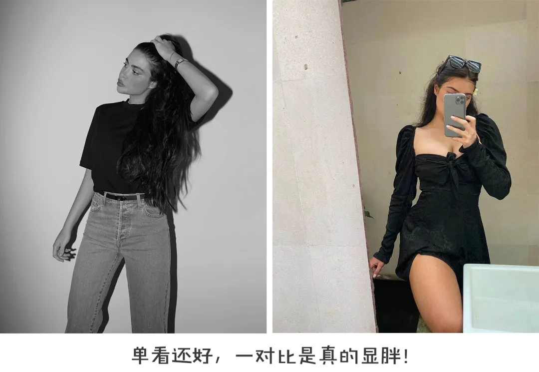 即使是同一色系的衣服,修身款明顯顯瘦很多。