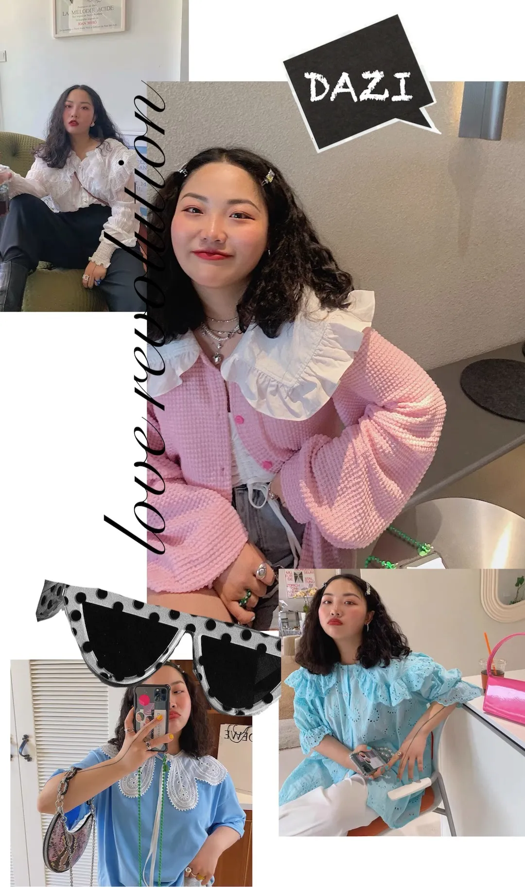 店主自己也很喜歡帶有娃娃領的連衣裙、小上衣,不顯胖反而顯得你嬌俏可愛,在T恤外面搭配一個假領子也是上面提到的顯瘦妙招!