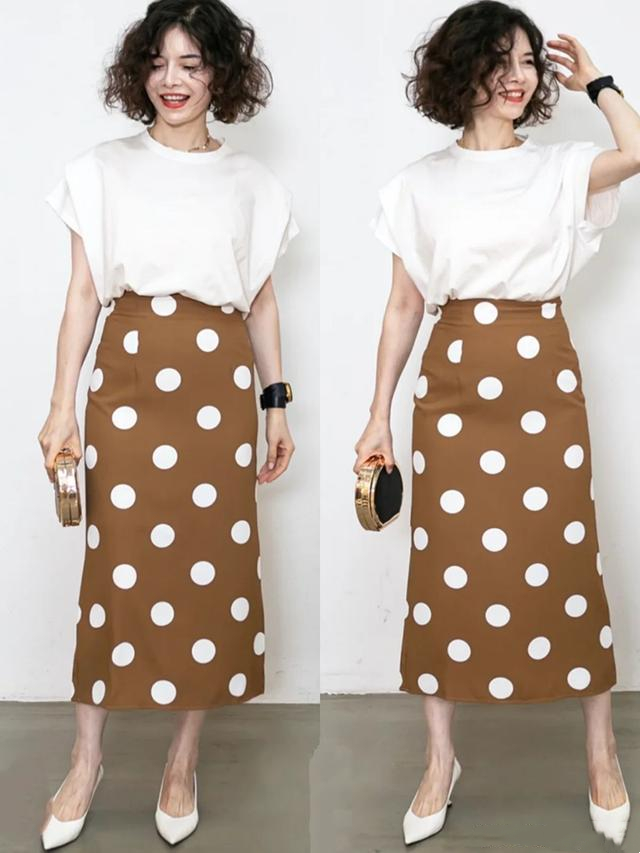 像這款迷笛裙,相比A字短裙,營造的風格更加優雅。她的長度超過膝蓋,又在腳踝的以上,對於雙腿有著包裹的作用,尤其適合不喜歡露腿的女性。搭配一款白色T恤,並將它塞進長裙中,優美的腰臀線條,打造出婀娜好身材。