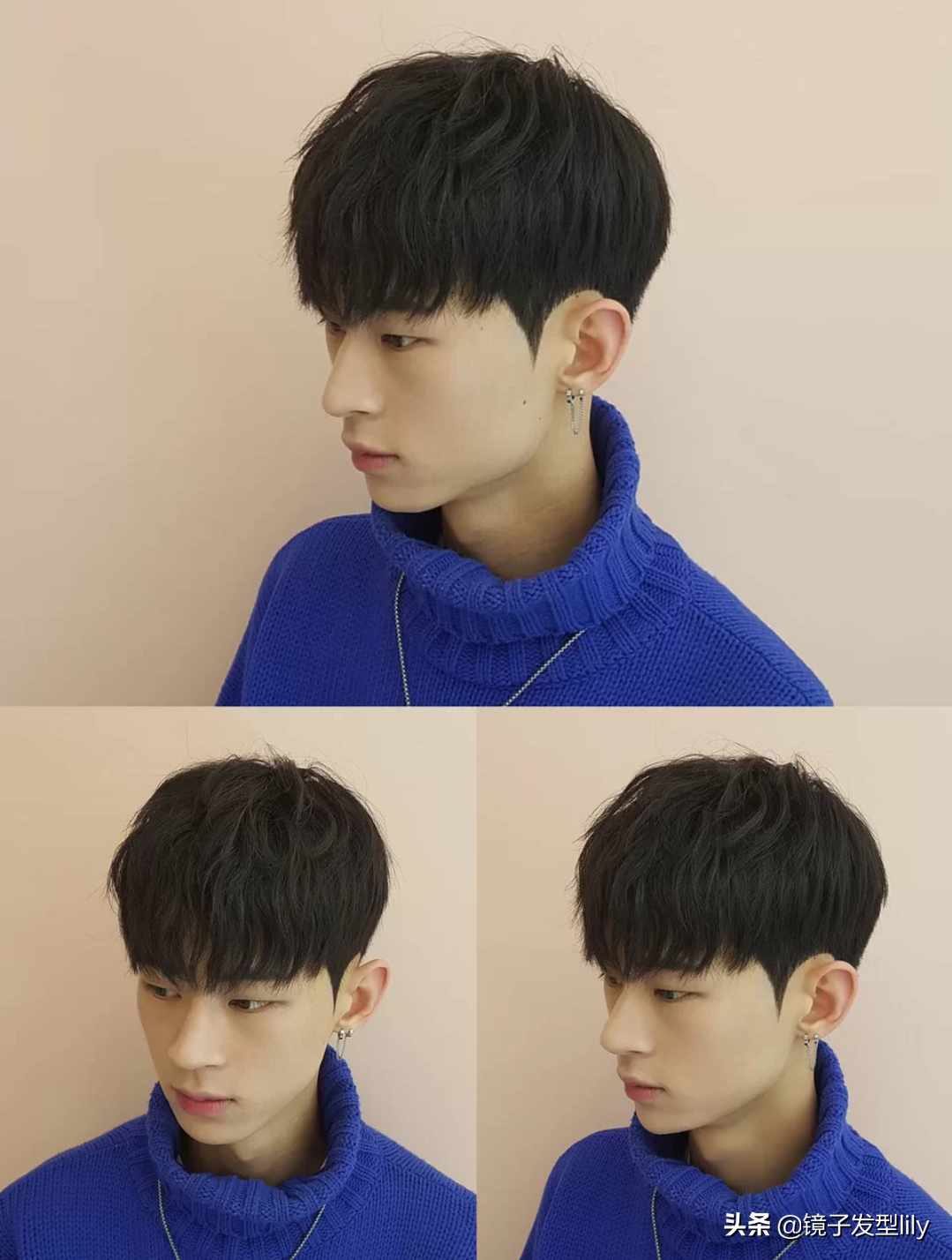 長臉型的男生可以嘗試這種三七分的愛心瀏海,為了避免呆板,也可以通過紋理燙髮來增加蓬松度,燙完有點韓系歐巴的味道。