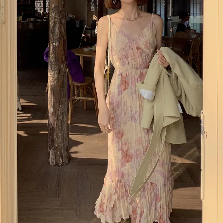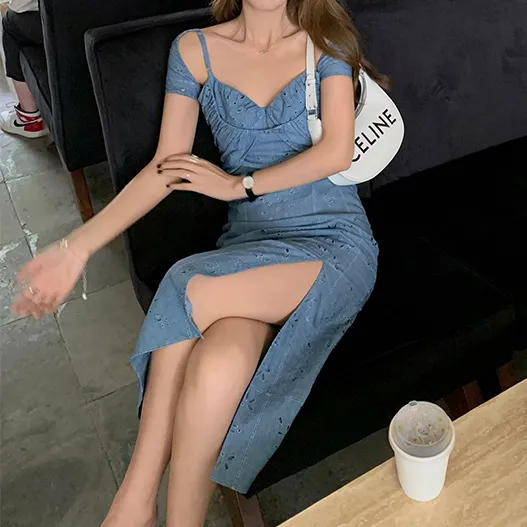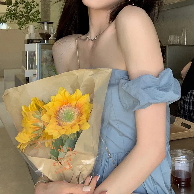 吊帶加露肩袖設計新穎