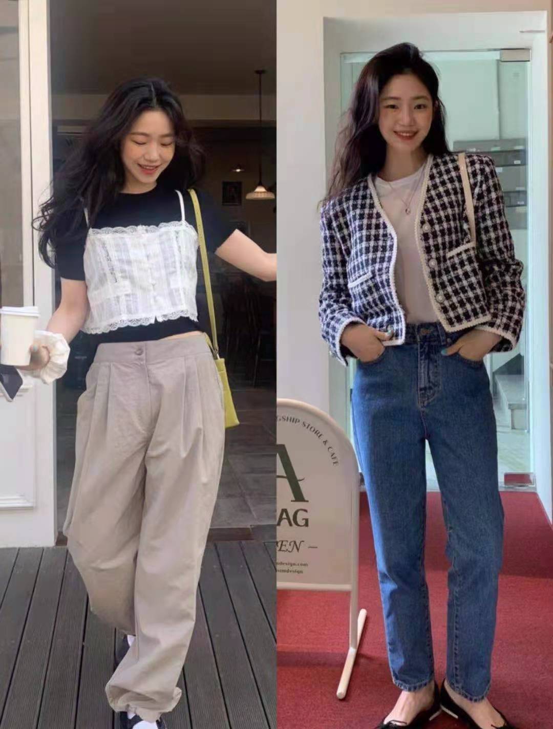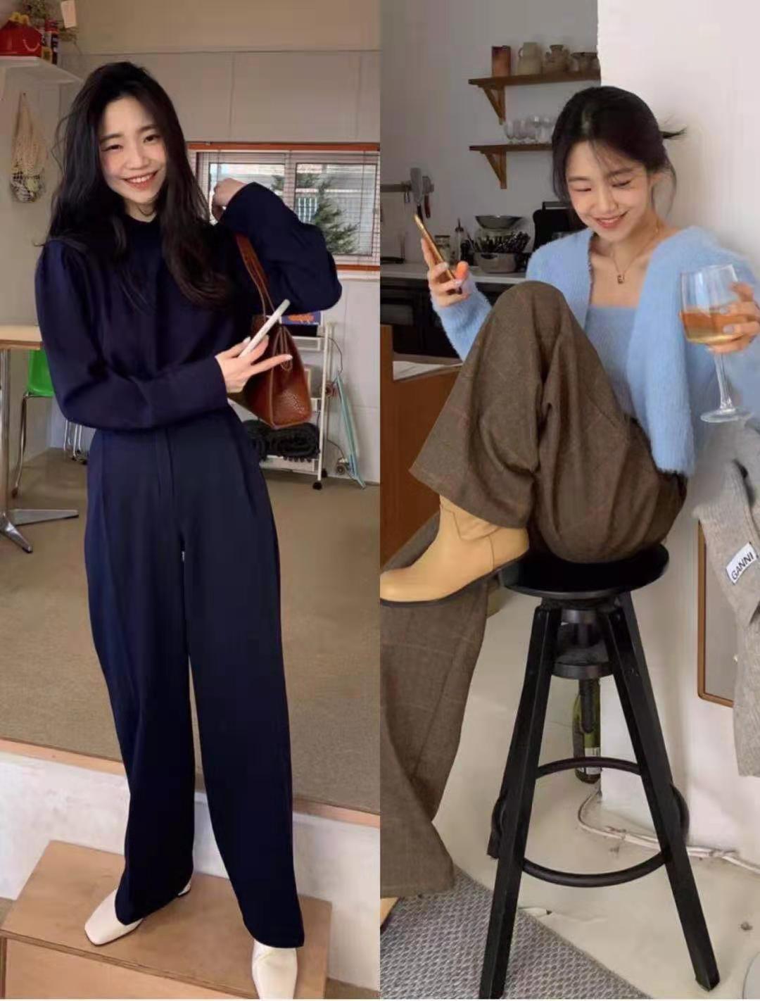這兩款服裝就比較適合日常穿搭了。上緊下松的穿搭原則一定是最顯瘦的,姐妹們一定要學起來。