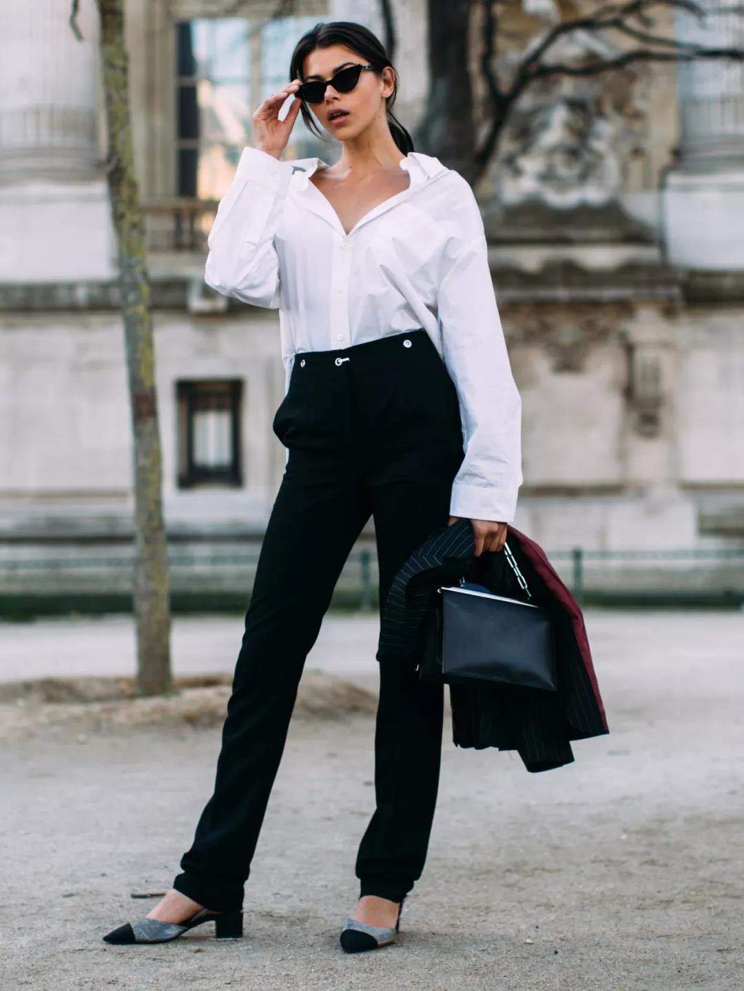 另外,穿著時保證:領型的自然翻起、向後拉起後脖領,給足脖子最大的空間;袖子卷起露出纖細手腕;解開領口的前2顆或3顆扣子,率性又自然。