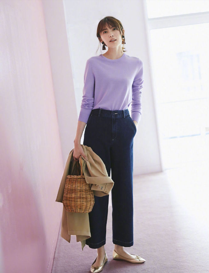 面料厚實、暖意更佳的牛仔闊腿褲,也許將成為啟動秋天的大拿。比黑色更俏皮的深藍色,時髦屬性更優。隨便搭、靈活穿,總歸錯不了。