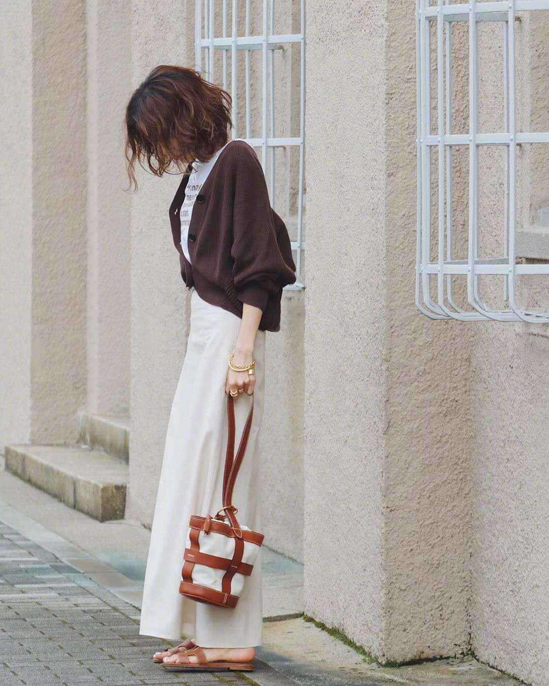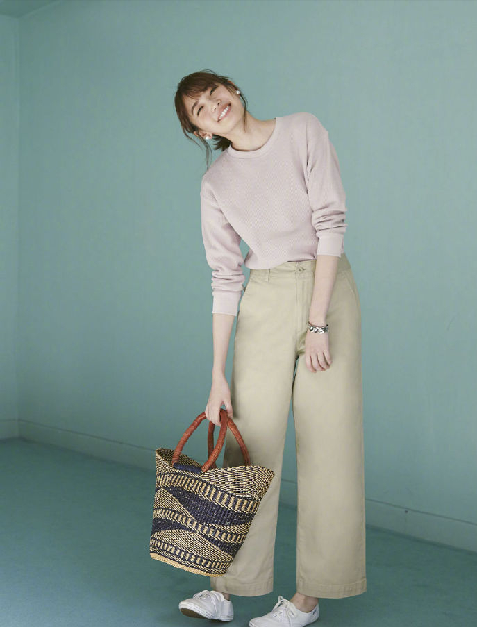 卡其闊腿褲,與卡其裙一樣,與初秋氣氛最契合。淡雅柔和,怎麼穿都優雅有餘。上衣不管是淺色、深色,卡其色都能承接,並體現最得體的一面。