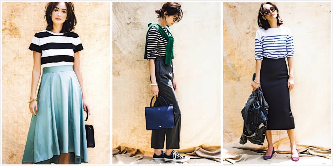 關於條紋衫的穿搭之道,之前分享過太多,今天不再贅述。洛薇將要點簡單列舉:想讓它時髦,要點在於挑選和搭配。盡量避免普通基礎款,除非你只想用來打底。