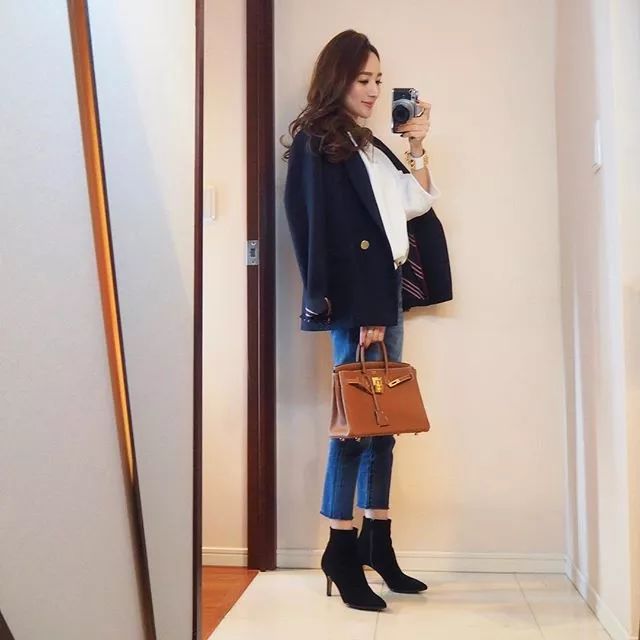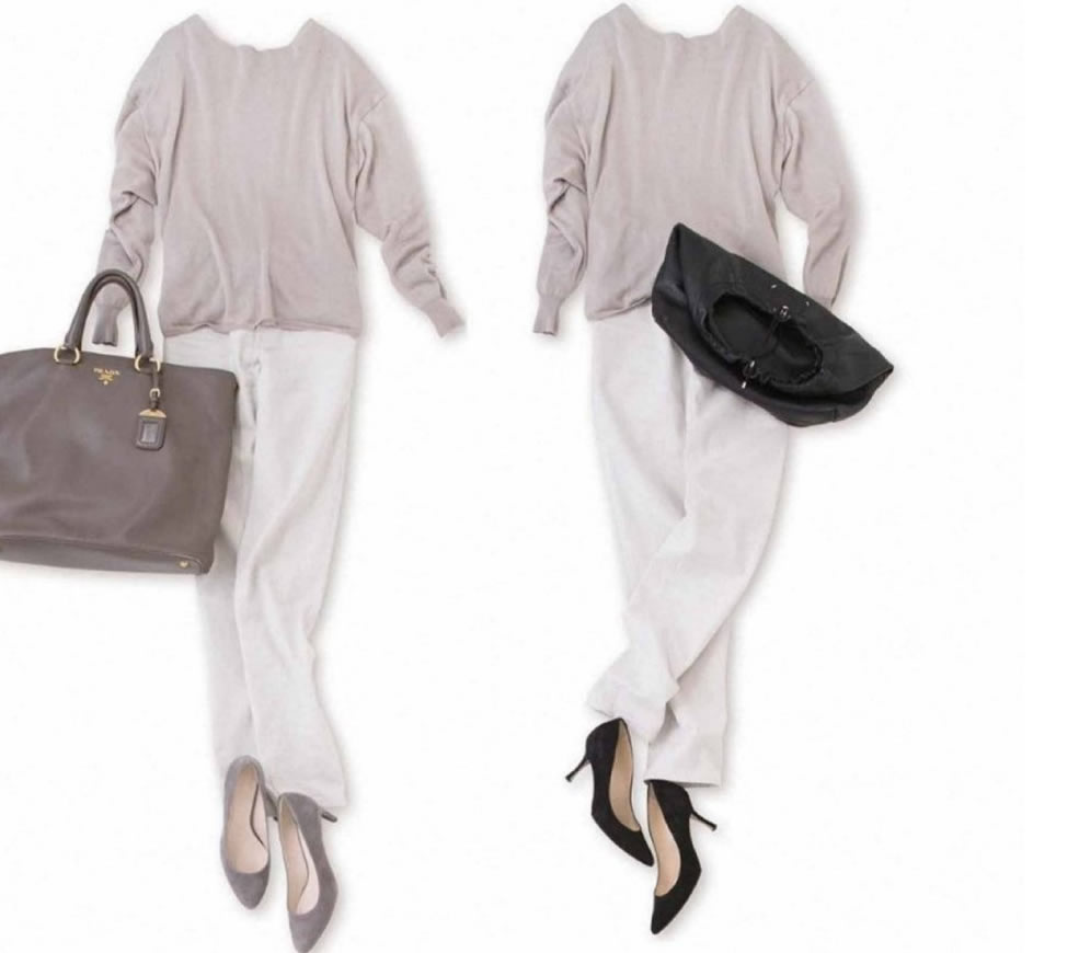 下面2套搭配,衣服風格差不多,僅僅因為圓頭單鞋和尖頭高跟鞋的不同,讓整體風格發生偏差。當然,還少不了包包的配合輔佐。一定程度上,鞋包不分家,視為整體。