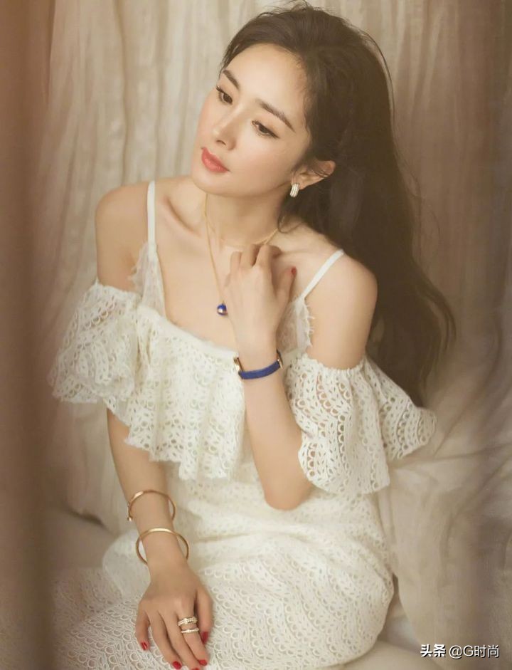 一字領加上吊帶的小白裙,穿搭效果和一字領差不多,蕾絲元素的小白裙,多了吊帶的修飾,更添氣質。