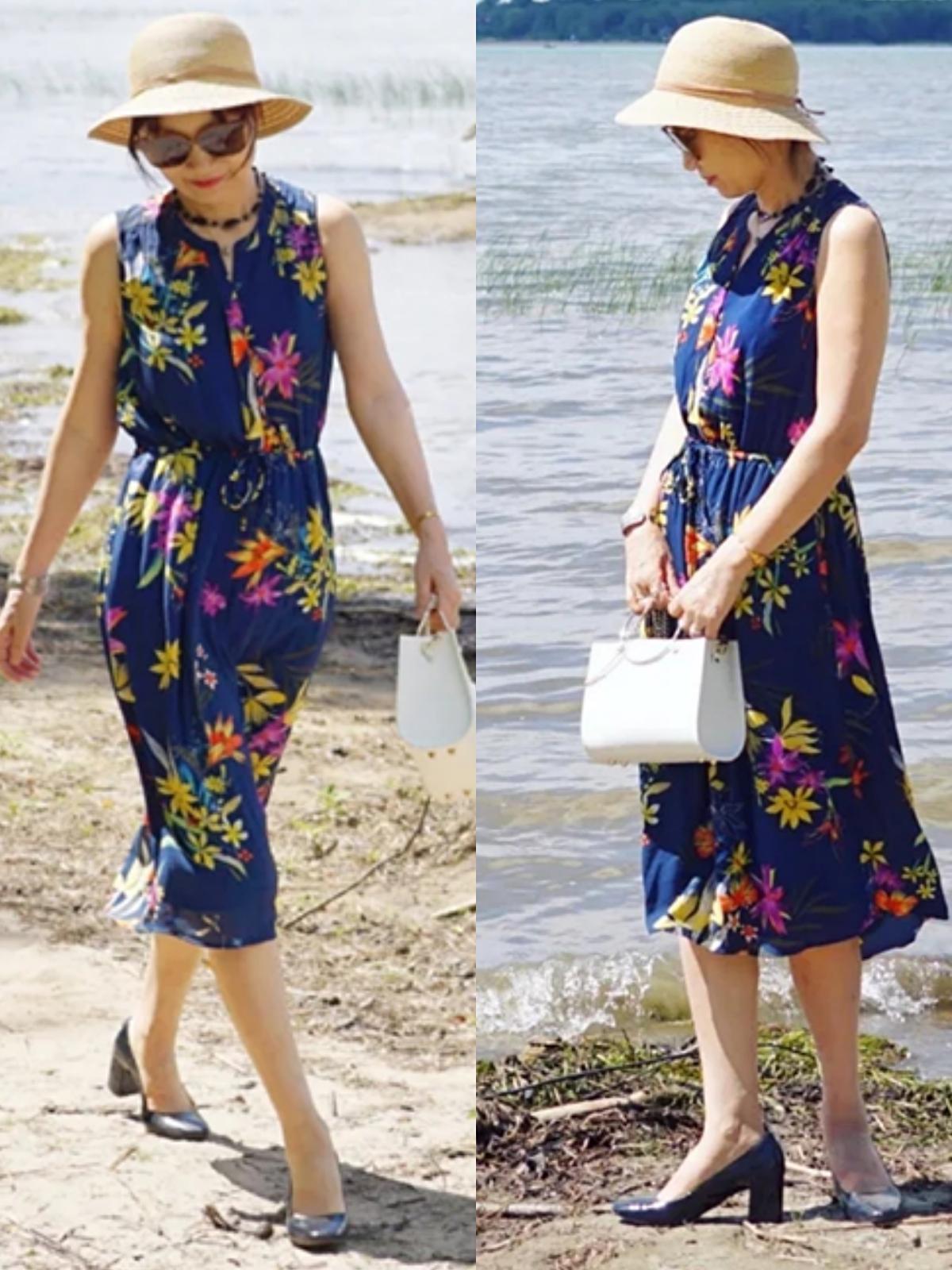 不過,碎花元素偏跳脫活潑,女生上了年紀後,更推薦在度假或者遊玩等場合穿搭碎花單品,氣氛感滿滿。