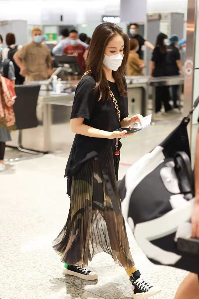 明星走機場裝備總是很足的,像王子文這套看似普通實際上也是相當豪的存在,裙子就要7千9,而腰上的包包更是1萬7,不過get不起同款裙子包包,腳上百元級別的帆布鞋還是不錯 的選擇,時髦百搭又接地氣。
