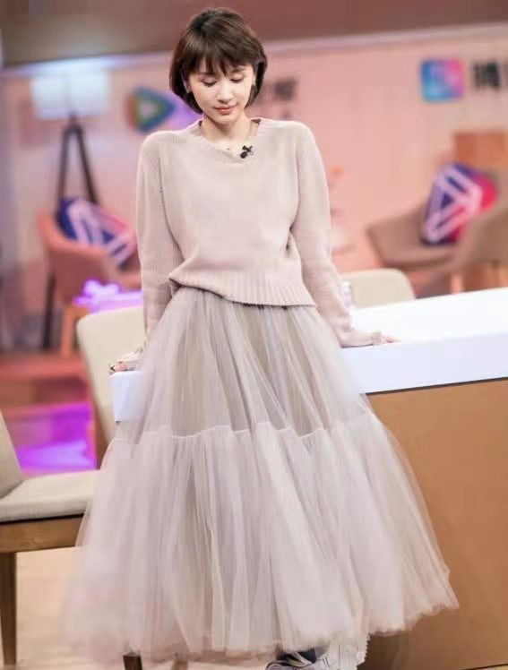 紗裙是少女感很強的單品,輕薄微透的效果很有朦朧感,柔軟飄逸的的整體效果,也會多一些浪漫柔和的感覺。