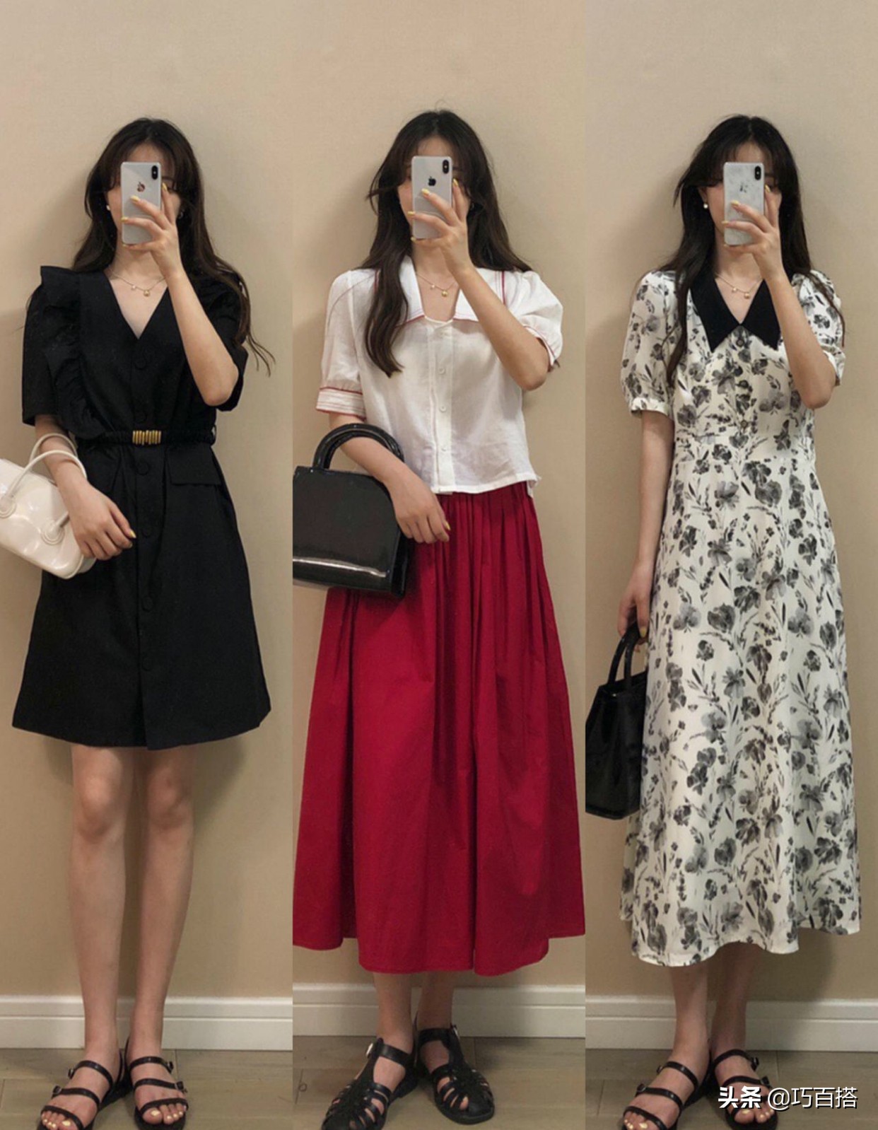 因為配飾並不一定顯氣質,反而會有一些拖累,就例如上圖中的手拎包就是如此,單獨看都非常好看,但是搭配在一起就顯得怪異,所以如果沒有把握,那麼寧願不搭配。