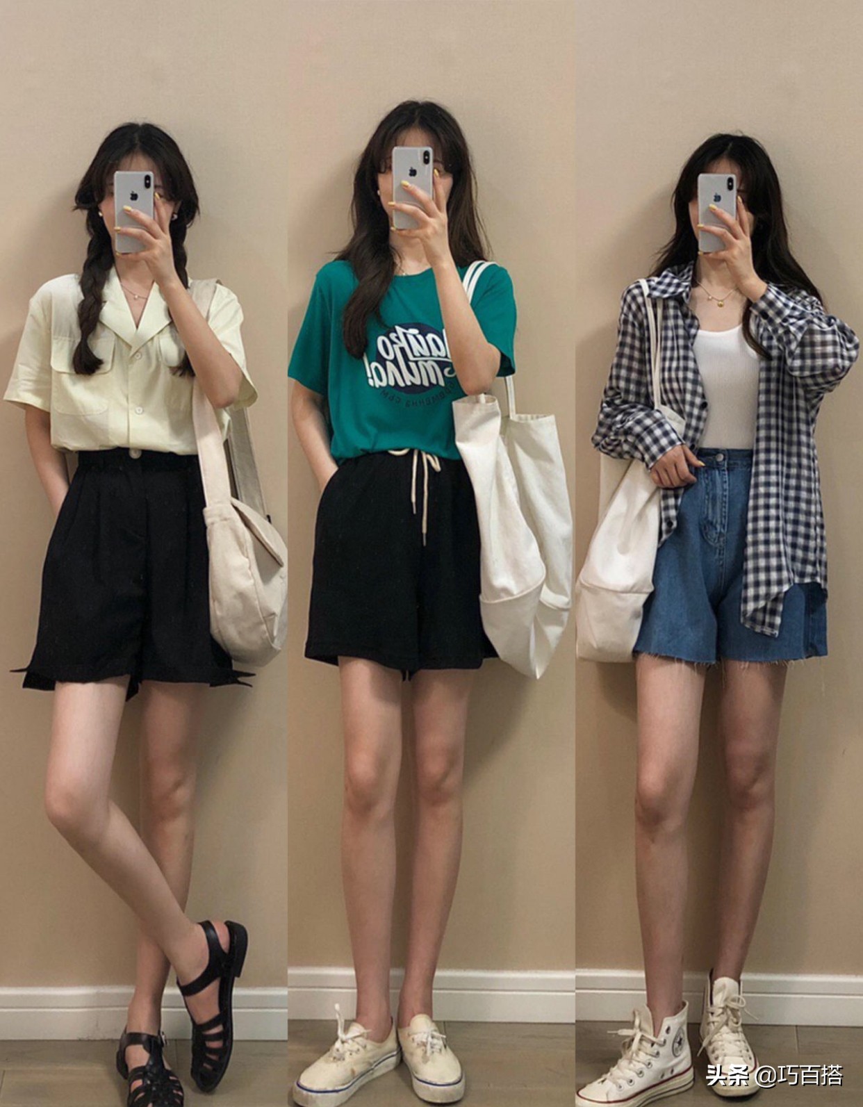 因為搭配造型都相對簡約,所以手拎包和帽子這種大件配飾也要盡量簡約,選擇基礎休閒款是最好的打開方式。休閒造型中,可以選擇帆布包,休閒文藝架式,穿著上身特別架式,女生味十足。