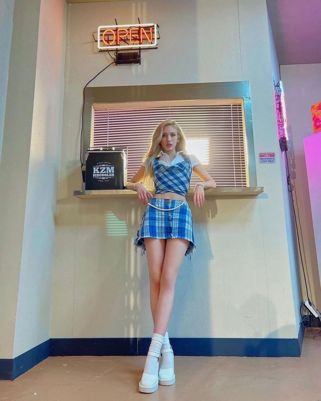 惹火的造型加上動感的wave,天然的diva氣息更加令人崇拜。經典格子花紋搭配短裙露臍上衣,既不沉悶又惹眼,給人一種古靈精怪的感覺。而對於看似天不怕地不怕,偶爾也會不自信的SOMI來說,或許這個風格能夠成為她的殺手鐧呢!